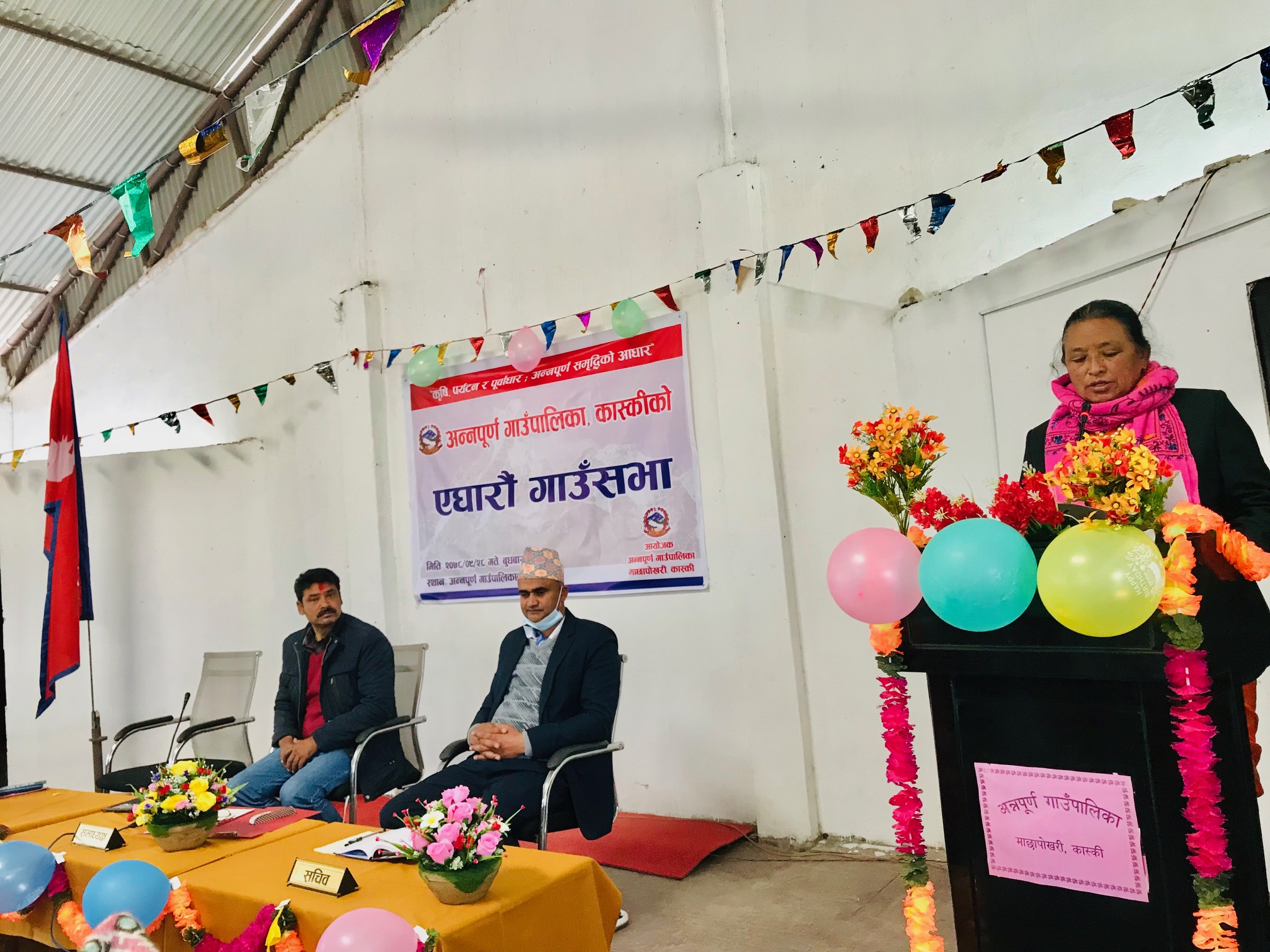 गाउँपालिका अध्यक्ष युवराज कुँवरको अध्यक्षतामा सम्पन्न गाउँ सभामा गाउँपालिका तथा वडा कार्यालयबाट सम्पन्न भएका तथा सम्पन्न हुन बाँकी कामहरुको बारेमा र बिभिन्न ३ वटा बिधेयकमा ११ वडाका वडा अध्यक्ष तथा वडा सदस्यहरुले आ–आफ्नो धारणा राख्नु भएको थियो । बजेट कसरी कार्यान्वयन गर्ने तथा सम्पन्न कामहरु र गाँउपालिकाको गतिबिधी बारे सभामा प्रश्न उठाईएको थियो ।