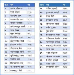 ३५ खुल्ला केन्द्रीय सदस्यका लागि ९९ जना प्रतिस्पर्धामा रहेका थिए । तीमध्ये डा. शशांक कोइराला सर्वाधिक मतसहित विजयी भएका छन् । विजयी ३५ केन्द्रीय सदस्यले पाएको मत यसप्रकार छः