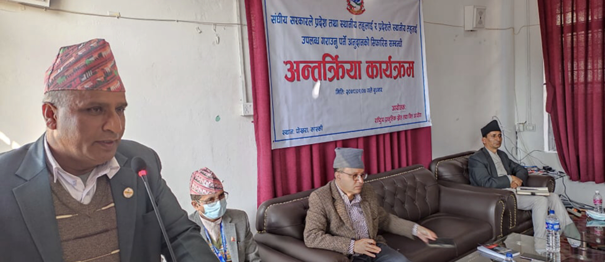 पोखरा भ्यूज । गण्डकी प्रदेश सरकारका अर्थ—मन्त्री रामजी प्रसाद बराल जीवनले तीन तहका सरकार बिच आरोप र प्रत्यारोपले संघियता बिरोधीलाई वल पुग्ने बताउनु भएको छ । राष्ट्रिय प्राकृतिक श्रोत तथा वित्त आयोगले बुधबार पोखरामा आयोजना गरेको संघीय सरकारले प्रदेश तथा स्थानीय तहलाई र प्रदेशले स्थानिय तहलाई उपलब्ध गराउनुपर्ने अनुदानको सिफारिस सम्बन्धि अन्तरक्र्रिया कार्यक्रममा वोल्दै मन्त्री बरालले उक्त कुरा बताउनु भएको हो ।