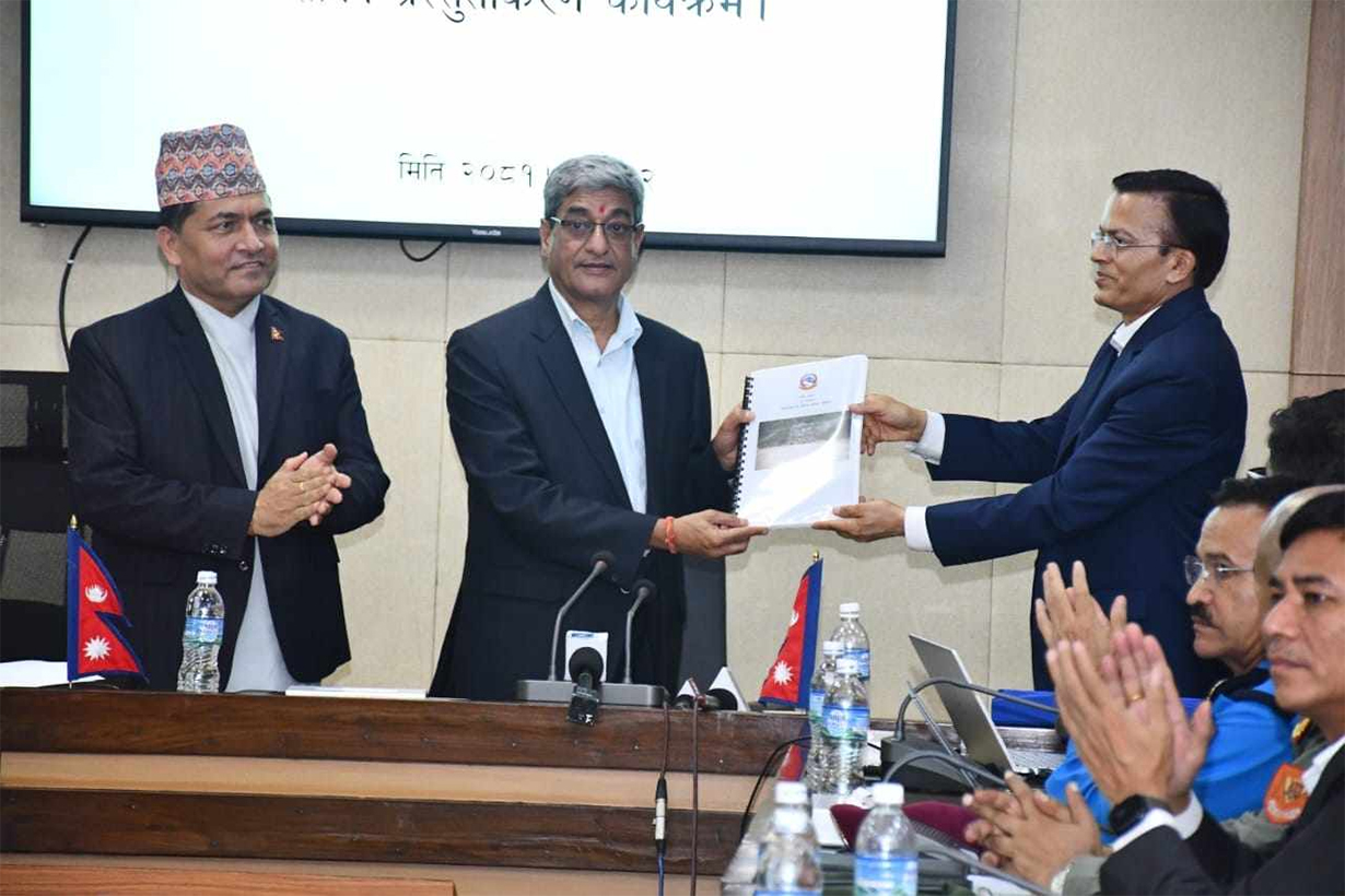 काठमाडौं । चितवनको सिमलताल बस दुर्घटनाको विषयमा अध्ययन गर्न गठन भएको कार्यदलले गृहमन्त्री रमेश लेखकसमक्ष अध्ययन प्रतिवेदन पेस गरेको छ । अध्ययन समितिका संयोजक छवि रिजालले मंगलबार गृहमन्त्री लेखकलाई अध्ययन प्रतिवेदन बुझाएका हुन् ।
