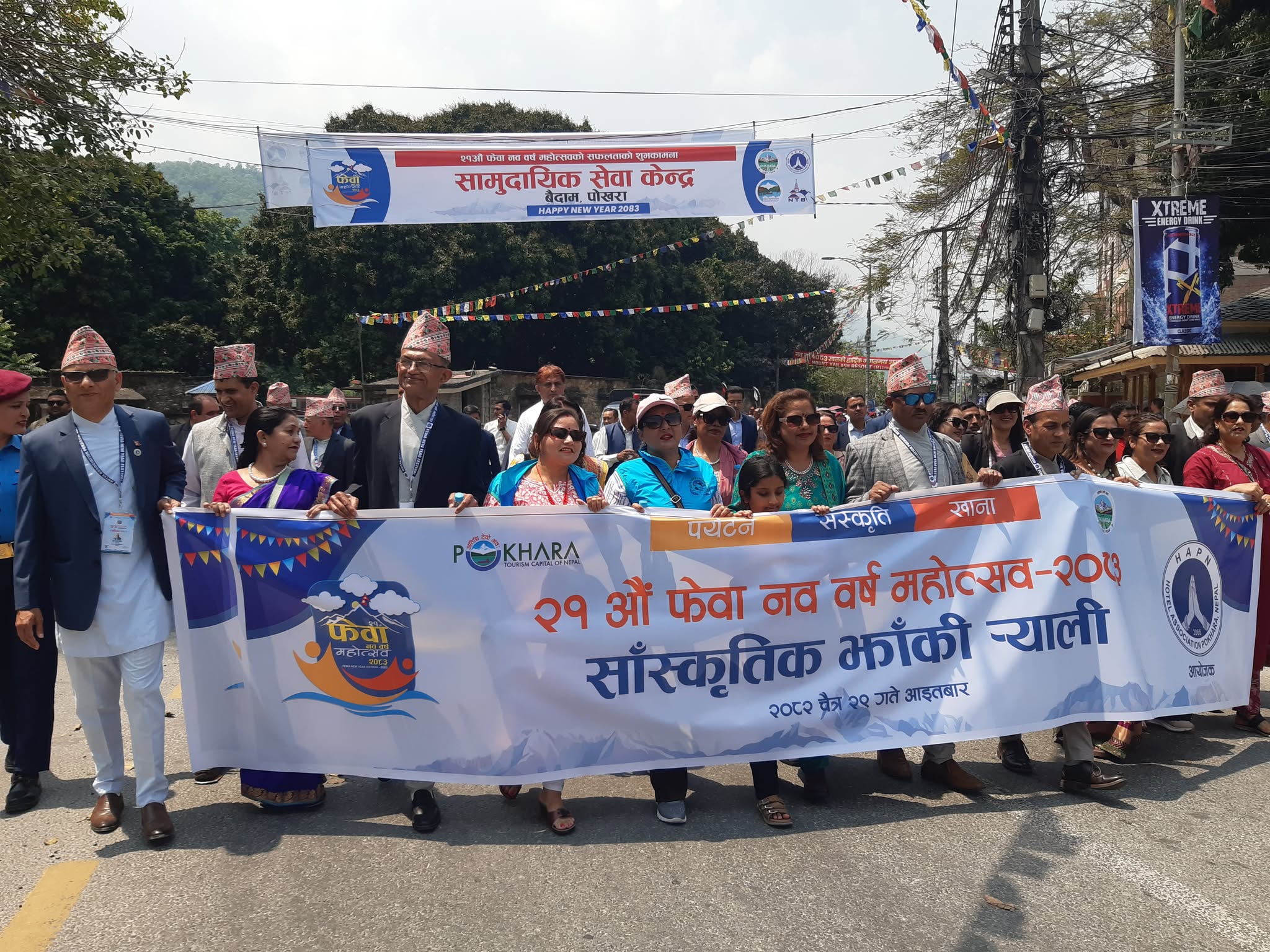 पोखरा, २९ चैत — सांस्कृतिक झाँकी, बाजागाजा र विविध कार्यक्रमसहित २१ औं संस्करणको फेवा नव वर्ष महोत्सव २०८३ आइतबारदेखि पोखरामा सुरु भएको छ। कास्कीकी प्रमुख जिल्ला अधिकारी रुद्रादेवी शर्माले अम्बोटमा आयोजित समारोहमा महोत्सवको उद्घाटन गरिन्।